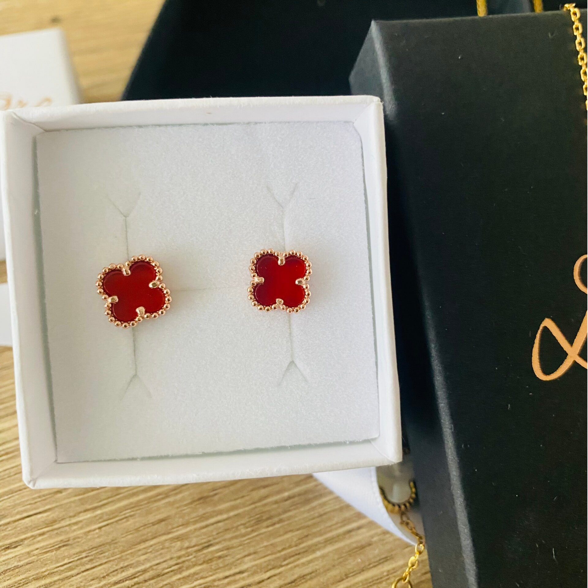 Auf dem Foto mit dem Model werden die kleineren Ohrstecker getragen.