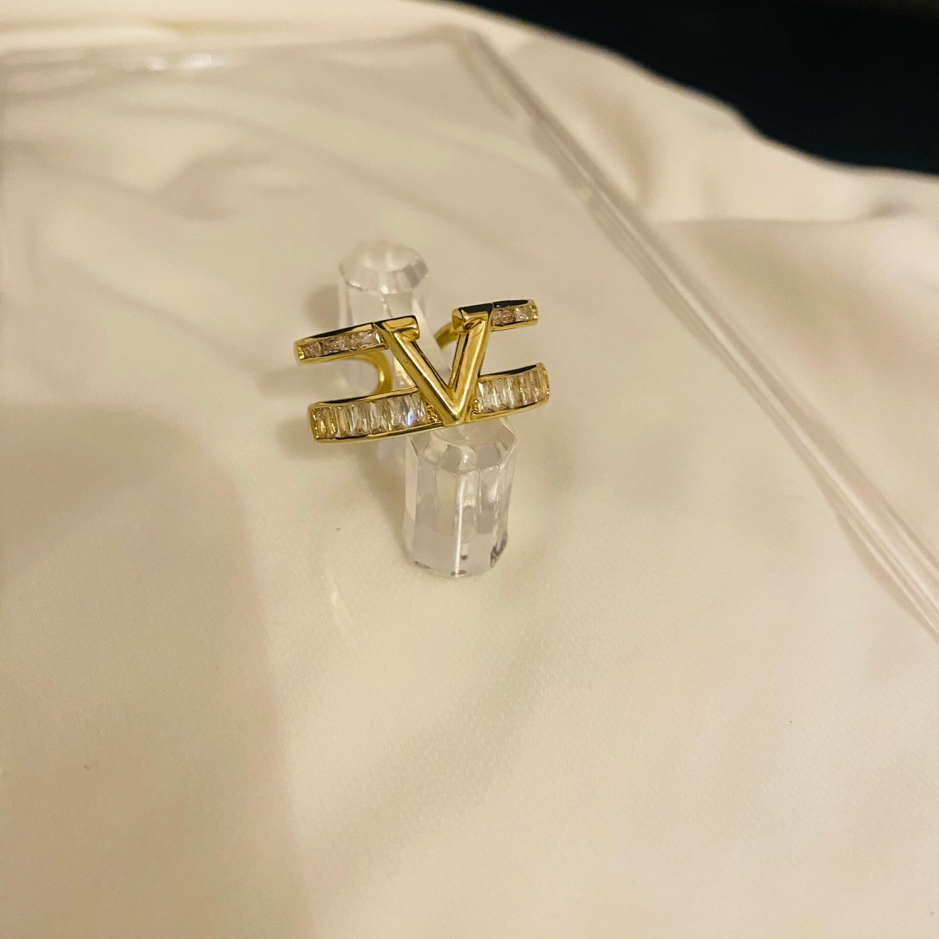 Der Ring "V" ist grössenverstellbar und kann von jeder Frau getragen werden.