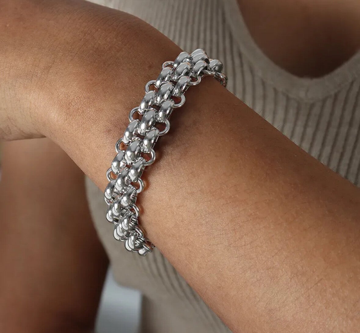 Ein Must-Have die Statement-Kette und das Armband Alani.Das Set wertet jedes schlichte Outfit auf. Es kann mit dem Verschluss gegen vorne oder nach hinten getragen werden.