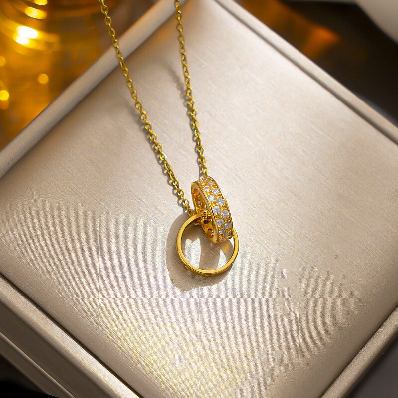 Schöne Halskette mit zwei Ringen. Farbe: GoldMaterial: Titan, 18k vergoldetGewicht: 15g